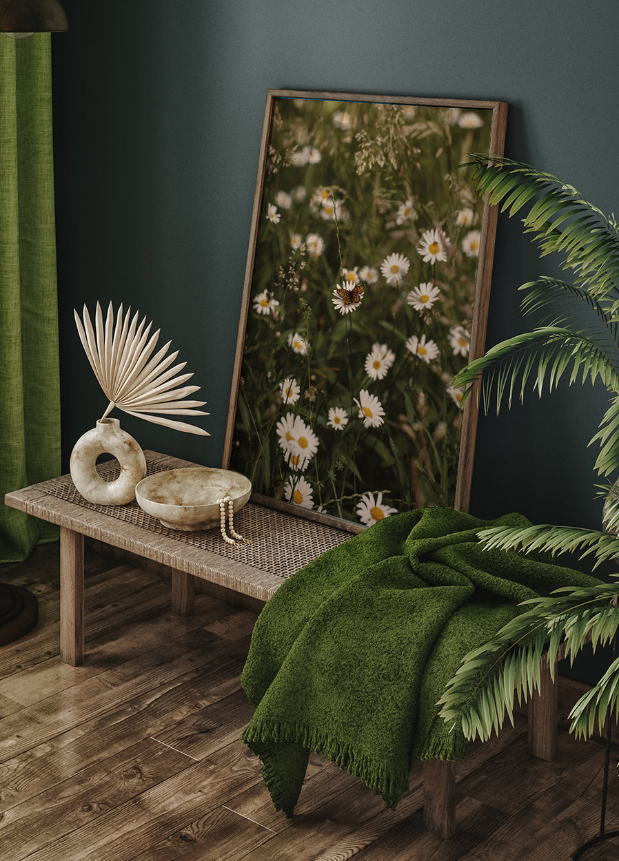 A delicate and modern poster with a motif of chamomile flowers and a butterfly. Perfect for adding a calm and natural atmosphere to any room, whether at home or in the office.
