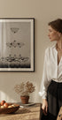 Champagne tower No.9 is a stylish black and white poster, where a sculptural champagne tower rises in perfect symmetry. The bubbles sparkle and the light plays in the curves of the glasses, so that reflections create depth and drama. An elegant, vintage-inspired eye-catcher for the bar, kitchen or living room with a sense of celebration. Creates an instant party atmosphere.