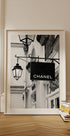 A sophisticated black and white photograph of the iconic Chanel sign in Paris. With its clean lines and elegant contrasts, this print expresses timeless French luxury and fashion heritage and becomes a stylish statement for interiors that celebrate style, elegance and iconic Parisian culture.