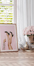 A bold and stylish poster that exudes a party atmosphere with elegant legs in black high heels and a sparkling glass of champagne against a pastel pink background. The combination of fashion, celebration and disco glamor makes this a perfect statement poster for modern interiors.