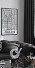 A stylish, monochrome tribute to Chicago: letters and graphic elements come together in a calm, balanced motif that highlights the character of the city in black and white. Minimalistic and retro at the same time, perfect for giving the home an urban touch. Design by StudioSix. Fits nicely in the entrance hall, living room or office and matches both modern and vintage interiors.