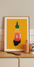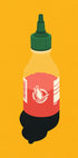 A bold and modern illustration of a chili sauce bottle on a vibrant yellow background. Minimalist yet eye-catching – this graphic artwork brings a playful pop-art energy to kitchens, dining rooms or modern interiors, making a fun statement for food and design enthusiasts.