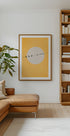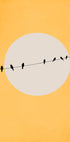 A minimalist and stylish illustration of birds on a wire, silhouetted against a circular background with a warm yellow tone. This modern graphic artwork radiates calm and balance and becomes a calming, but at the same time striking feature in modern interiors.