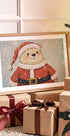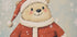 A dear, picturesque Christmas bear stands in a snowy landscape, surrounded by silent snowflakes and wintry frost. The warm beige and red tones and the soft, material texture give a nostalgic, retro expression that evokes childhood memories and creates coziness in the children's room, the living room or the entrance hall. A welcome motif for winter, Christmas and cozy nostalgia.