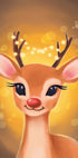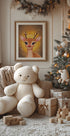 A sweet and adventurous reindeer portrait with sparkling light chain on the antlers and a warm golden background. The soft illustration and the friendly smile make the motif both cozy and playful. Ideal for Christmas decorations in homes that want a little winter magic on the wall.