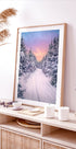Get into the Christmas spirit with Christian Lindsten's winter landscape: a quiet, snow-covered road disappears between dark pine trees towards distant mountains, while the sky glows in pink and blue dusk. Frost, calm and anticipation meet in a poetic moment that directs the gaze towards new horizons. Perfect for creating calm December magic in the home.