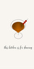 A festive and stylish illustration of a Christmas cocktail in a clear glass, set against a light, minimalist background. Discreet letters and kitchen references create a cozy X-mas atmosphere. A modern eye-catcher for the dining area. Design by Kubistika - perfect for the holidays. With festive nuances and a pure bar atmosphere, it oozes Christmas.