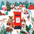 A poetic Christmas illustration by Caroline Bonne Müller: In a snowy village area, a happy dog with reindeer antlers and bag posts his Christmas greetings in the red mailbox. Snowflakes fall over houses and fir trees, and the scene exudes humour, warmth and anticipation – perfect for the children's room and a cozy winter atmosphere.