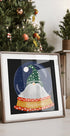 A winter magic poster by Susana Costa: An elf-clad Santa hidden in a snow globe, surrounded by fir trees and glittering snowflakes. The warm red hat and the handwriting "Merry Christmas" give a nostalgic atmosphere, where coziness, play and the charm of Christmas merge in a dreamy winter landscape - a charming greeting for the Christmas season.