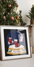 A nostalgic Christmas poster by Susana Costa: A sparkling snow landscape in a snow globe, cozily cradled in a classic Christmas stocking. Shades of red and green, golden details and vintage typography with "Merry Christmas" create a warm, playful atmosphere—perfect for igniting Christmas cheer in the home and spreading classic, timeless Christmas magic.