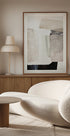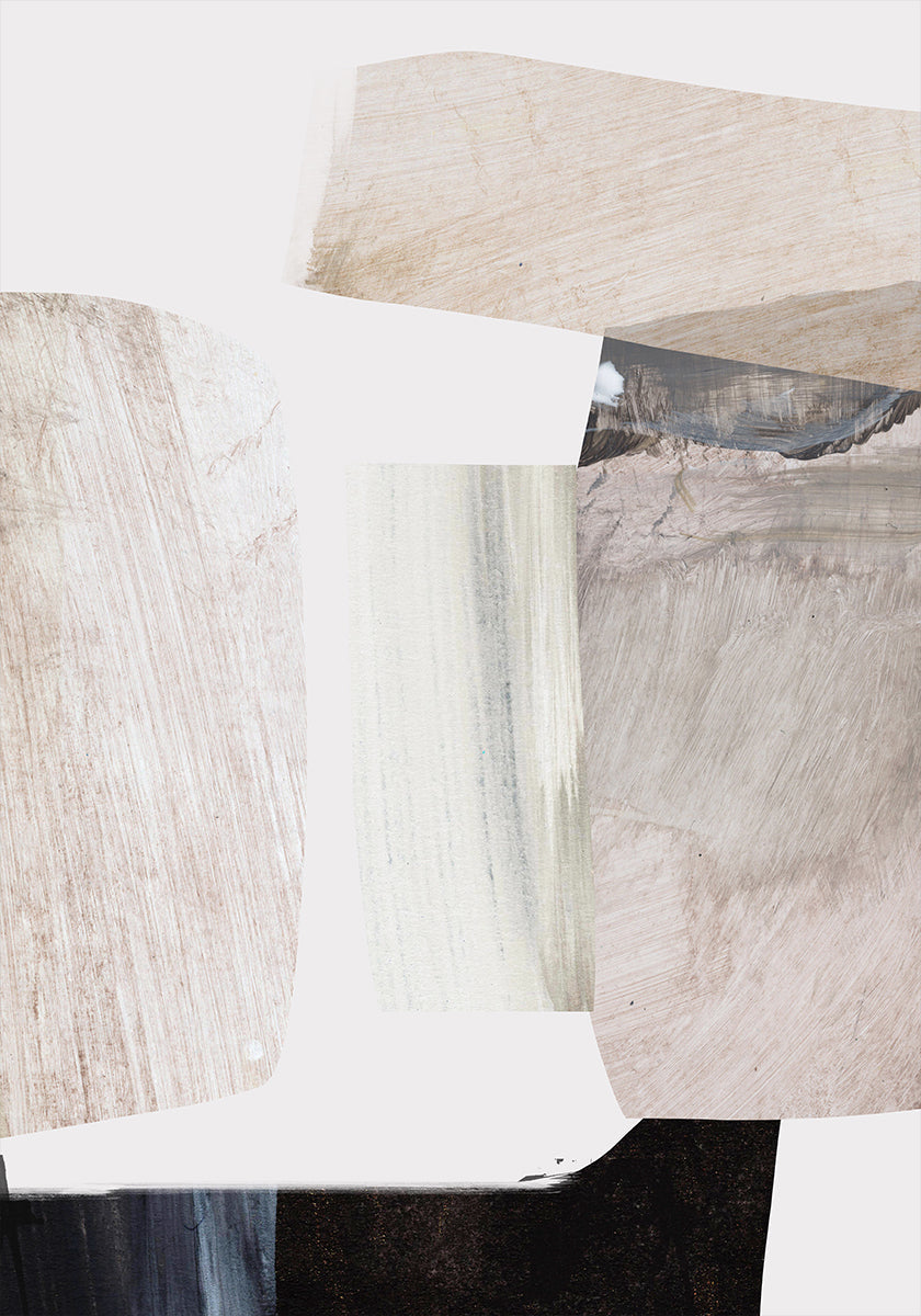 A minimalist abstract poster by Dan Hobday with soft layers of brush strokes in neutral tones. The textured shapes create a balanced and modern composition, perfect for modern interiors, Scandinavian design or as part of a calming picture wall.