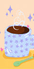 Coffee Time Retro Illustration by Dirkie Nell captures the coziness of a colorful, retro-inspired scene: a steaming coffee cup with smiling details, playful stars and a small spoon, set in warm browns, yellows and pinks. A happy, funky expression that brings a café atmosphere, nostalgia and everyday joy into the room.
