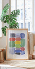 A modern abstract poster with colorful watercolor blocks arranged in playful geometric shapes. The overlapping shades of blue, red, green, yellow and black create a vibrant yet minimalist expression, perfect for modern interiors and gallery walls.