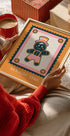 A warm, cozy scene with a smiling gingerbread man surrounded by freshly baked cookies, stars of cinnamon and a sprinkling of powdered sugar on a wintry table. Soft, golden tones and subdued lighting frame the motif, while Christmas branches in the background create anticipation, winter glow and pure cookie happiness. Perfect for winter comfort in the kitchen.