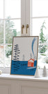 A quiet winter's evening by the lake's shore: A red log cabin with a smoking chimney is framed by dark pine trees, perfectly reflected in the icy water. The simple, geometric shapes and the cool blue shades create a modern, minimalist atmosphere that exudes calm, warmth and secluded coziness. A calm eye-catcher.