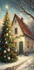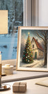 A peaceful winter motif with a small house in the snow and a beautifully decorated Christmas tree beaming with warm lights. Light snow falls over the stage, while the illuminated windows and the golden glow create a quiet, nostalgic Christmas atmosphere. Ideal for living room, entrance hall or as a calm and festive part of a winter gallery wall.