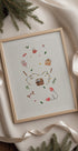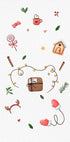 A lovely watercolor illustration by Xuan Thai that captures the magic of Christmas with a cozy gingerbread house, candy canes and colorful lollipops, warm mittens and twinkling string lights. Kawaii details, reindeer antlers and small gift boxes create a playful atmosphere - perfect for children's rooms and winter coziness. Ideal as a seasonal decoration.