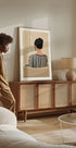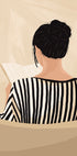 A warm and inviting illustration of a woman reading from behind in a striped top. The soft beige tones and relaxed mood create a soothing aesthetic, making this the perfect piece for bedrooms, living rooms or reading nooks — ideal for anyone who loves quiet moments and cozy spaces.