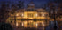 An evocative night shot of Madrid's Palacio de Cristal, whose elegant glass dome is reflected in the quiet pond. Surrounded by the silhouettes of the trees and warm light, the motif creates a calm, poetic atmosphere. The symmetry and reflections direct the eye towards the details of the palace. Photo by Bartolome Lopez. Madrid, Spain.
