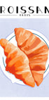 A charming food illustration that celebrates the French croissant, served on a plate in warm golden brown tones. With the text "Croissant Paris" written in elegant typography, this artwork captures the spirit of French cafes and breakfast culture. A lovely print for kitchens, dining rooms or anyone who loves Parisian style and baked goods.