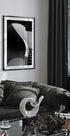 Olavo Azevedo's CURVED LINES captures a monochrome, architectural scene, where a curved staircase and smooth facade surfaces dance in light and shadow. The soft lines and sharp contrasts create calm and rhythm, which lead the eye upwards and give the room a minimalist, timeless energy. Inspired by Lisbon's modern museums, the motif emphasizes form, rhythm and calm.