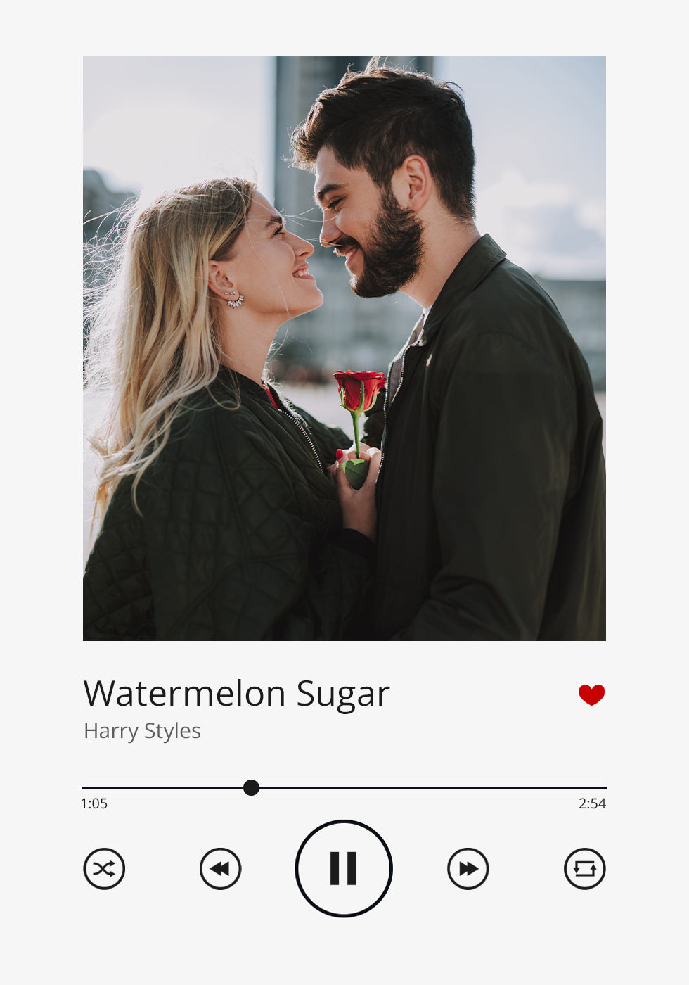A "personal music poster" featuring your "favorite song and a special photo" in a stylish "Spotify-inspired design". This "custom music print" is a unique way to preserve a cherished memory, perfect as a "romantic gift, anniversary gift or home decor". Create a "personal music print" to celebrate love, friendship or a special moment.