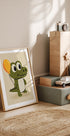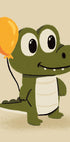 A cheerful and playful illustration of a cute crocodile holding an orange balloon. With its big, friendly eyes and soft textures, this artwork brings a sense of fun and lightness — perfect for kids' rooms, playrooms, or spaces designed to inspire joy and imagination.