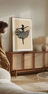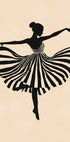 A graceful black silhouette of a ballerina in the middle of a pirouette, with the striped dress flowing in elegant motion. The soft beige background and strong contrast give this piece a timeless, stylish feel — perfect for adding artistic movement to the living room, studio or gallery wall.