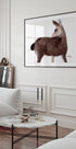 Janel Bragg's Deer On Creekside Lane captures a quiet moment by a quiet creek, where a curious deer steps onto the trail. Warm brownish shades, soft shadows and a modern, balanced cut create a sensuous atmosphere of autumn and peaceful wilderness – perfect for nature lovers with an eye for tranquility and poetry.