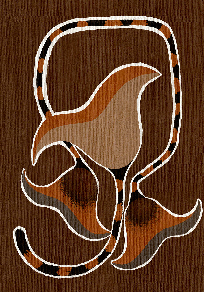 Immerse yourself in Delicate Bloom 4 by Shatha Al Dafai: a modern botanical composition where elegant flowers and sinuous stems unfold in earthy brown tones with vibrant orange and pink hues. Graphic shapes and fine lines create a timeless, retro-poetic atmosphere for both living room and gallery. Perfect as a botanical statement.
