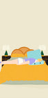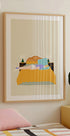 A humorous and minimalistic illustration of a woman lying exhausted on a bed with her head resting on a laptop. This playful artwork captures the modern digital lifestyle and the balance between rest and productivity, making it a fun addition to modern spaces.