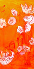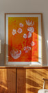 A bold and expressive floral artwork with dynamic brush strokes in warm ocher and orange hues, accented by delicate white orchid-like flowers. Inspired by expressionist styles with a modern twist, this piece brings tropical warmth and energy into any space.