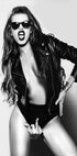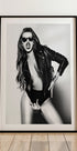 A bold and edgy black and white portrait of a woman in a leather jacket and sunglasses that exudes confidence and attitude. Combining sensuality, rebellion and glamour, this striking fashion-inspired artwork is perfect for modern interiors, fashion areas or as a contemporary wall art statement.