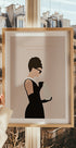 A minimalist and stylish illustration of a woman in a classic black dress, inspired by timeless fashion and elegance. The quote “Elegance is the only beauty that never fades” adds sophistication, making this artwork perfect for fashion lovers, elegant homes and modern wall decor.