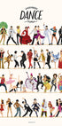 A lively and playful poster with iconic dance styles from around the world, from ballet to hip-hop, flamenco to breakdancing. This colorful tribute to movement and culture is a must for dance lovers and pop culture fans. Perfect for studios, living rooms or any room that deserves rhythm and joy.