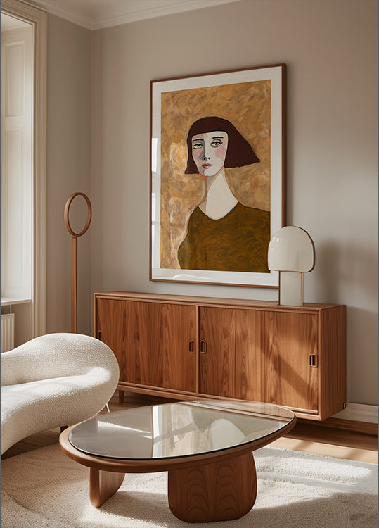Expressive Portrait Lady with Bob Haircut green eyes by Sharyn Bursic - Premium quality paper with a smooth matte surface and elegant feel. The matte finish reduces glare and gives a refined, timeless look. Strong and durable for long-lasting use, ideal for both professional settings and decorative displays.
