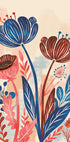 A vibrant botanical illustration with bold red, blue and earth-tone flowers against a soft, textured background. The vibrant mix of colors and organic shapes add warmth and charm — a perfect piece to brighten up kitchens, living rooms or a modern gallery wall.
