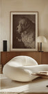 A humorous vintage-inspired art poster with a sepia-toned portrait of a dog and the funny quote: "woof, anonymous dog 1941." A playful combination of classic portrait and typography, perfect as a wall decoration for dog lovers.