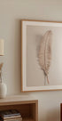 A light, white feather floats against a clean, light background, creating a quiet moment of weightless calm. The fine fibers draw elegant lines that give the motif poetic movement and discreet depth. A minimalist eye-catcher that adds air, balance and harmony to the living room, bedroom or office. Created in light, Nordic calm.