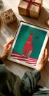 A festive and fab poster scene by Rosana Laiz Blursbyai: an elegant Siamese cat poses in a winter mood, decorated with red stripes and candy cane notes. The picturesque, slightly retro color palette and twinkle in the cat's eyes spread Christmas spirit and charm in the living room—perfect for the cozy moments of the season. Hang it in the entrance, living room or children's room.