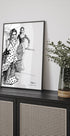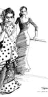 The pulse of flamenco is captured in a lively sketch of two dancers in dotted dresses, caught in the middle of a dramatic swing. The expressive, sketchy lines and Spanish references to Seville and Madrid give the motif energy and charm. A tribute to friendship, rhythm and style - by Awol Art Alex. Dots, volantes and attitude make the piece an eye-catcher in any room.