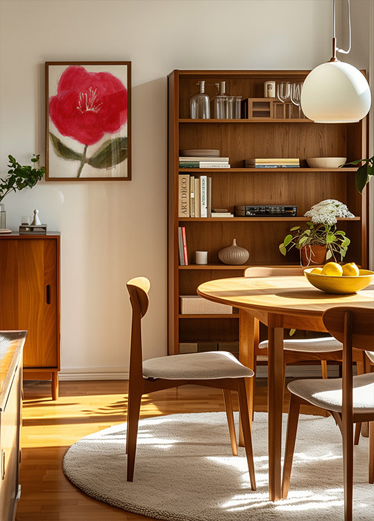 Floral In Red for Cierra by Janel Bragg captures the eye with a strong, electric red flower painted in bold, organic strokes. The white surfaces and light notes of green leaves create Zen-like tranquility and modern energy at the same time – a playful, botanical abstraction that brightens up any wall. Perfect for modern rooms.