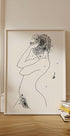 Flower Girl is a monochrome line art portrait of a woman, where elegant black contours meet delicate flowers around the face. The clean white background and generous negative space give the subject calmness, air and graphic strength. A stylish, feminine eye-catcher for modern, Nordic interior design. Perfect on its own or as part of a quiet gallery wall.