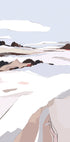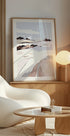 This poster by Nikita Jariwala captures the quiet poetry of winter: a frozen body of water, soft snowdrifts and distant mountain silhouettes in cool blues and warm earth tones. The minimalist landscape balances calm and depth, so that the eye shifts from frosty details to the quiet light of the horizon. Perfect for rooms looking for Nordic tranquility.