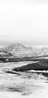 A graphic black and white landscape by Lynann Colligan: a frozen Icelandic river winds its way through the tundra towards distant mountains under a vast, still sky. The contrasts between the cracks in the ice and the soft surfaces of the snow create depth and calm, with Nordic minimalism and raw winter poetry. A timeless, monochrome look at the power of nature.