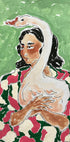 Girl With Duck by Rushati Chowdhury is a poetic portrait of a young woman calmly interacting with a duck. Subtle color tones and soft contrasts create a dreamy, modern atmosphere, where the gaze and the silhouette of the bird form an elegant balance. An inviting wall story with quiet strength. Perfect for rooms that call for calm and curiosity.