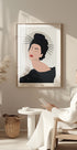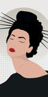 A captivating portrait of a geisha with calm closed eyes, striking red lips and elegant hair decorated with traditional hairpins. The minimalist background and refined design convey a sense of beauty and cultural sophistication — perfect for Japandi, fashion or modern art interiors.