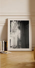 A stylish black and white photograph of a Gucci store, highlighting the elegant facade and iconic sign. Capturing the spirit of Italian luxury and timeless fashion, this print becomes a refined wall art choice for interiors inspired by design, culture and the world of fashion.