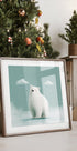 This poster captures a happy polar bear moment: a smiling, round-cheeked polar bear stands in a soft winter landscape, surrounded by quiet snow and Nordic light. The simple shapes and muted colors create calm and warmth, and give a playful, modern expression, perfect for a children's room, living room or entrance hall. It brings the poetry of nature into the home.