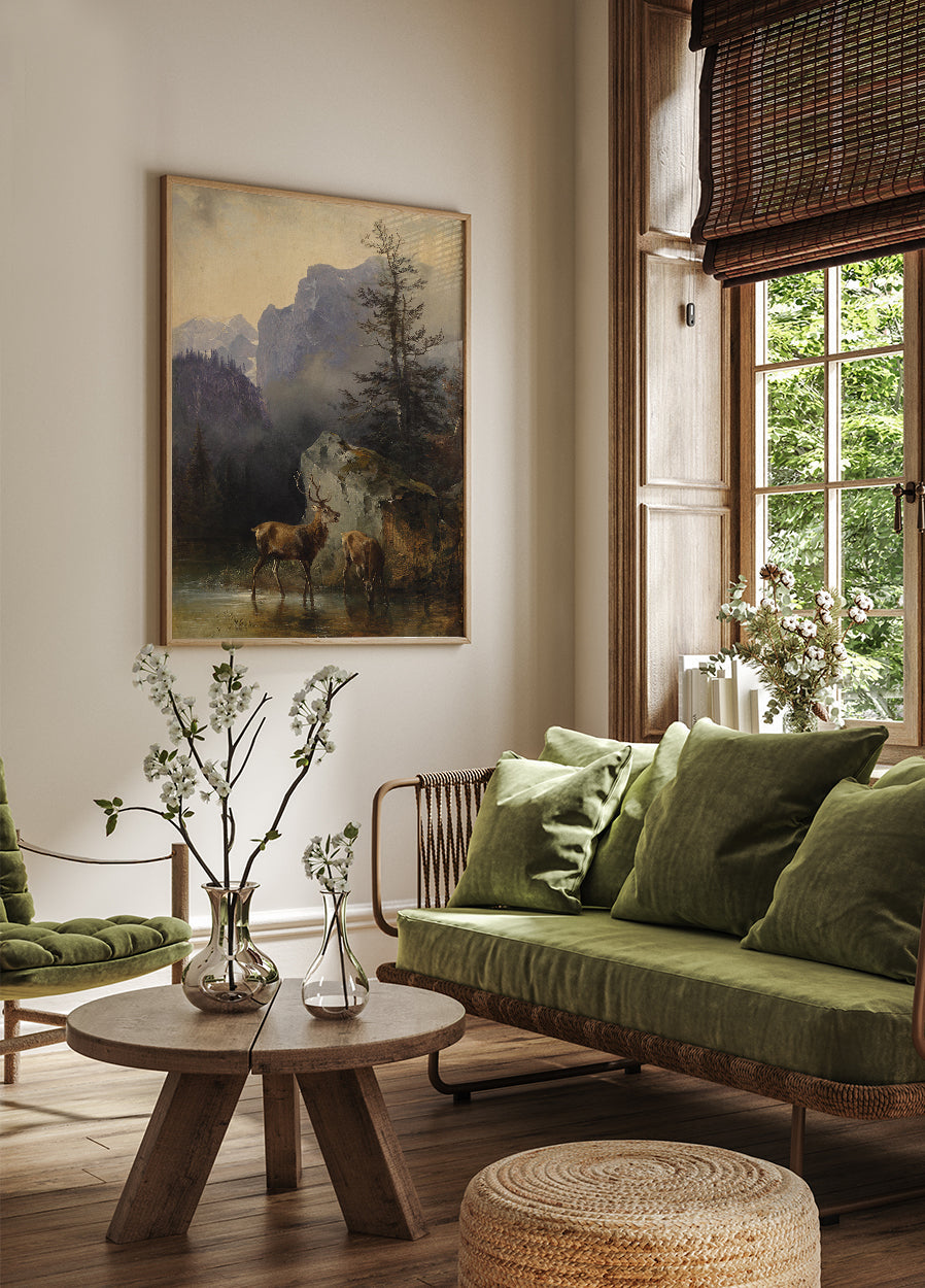 Hirsch And Tier An Der Tränke By Friedrich Gauermann Poster